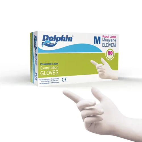 Dolphin Lateks Pudralı Muayene Eldiveni (M) 100 Adet