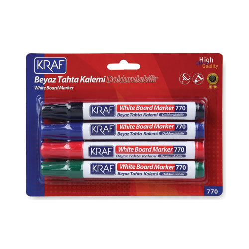Kraf Beyaz Tahta Kalemi Doldurulabilir 770-4 4 Lü Blıster