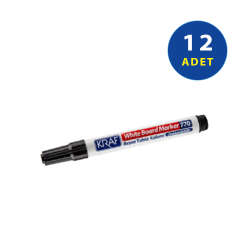 Kraf Beyaz Tahta Kalemi Doldurulabilir 770 Siyah 12 Adet