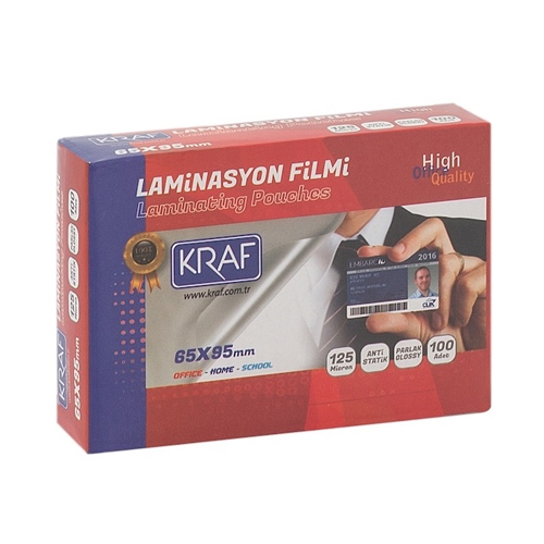 Etiket: KRAF LAMİNASYON FİLMİ 65X95 MM 125MIC 100LÜ 2126