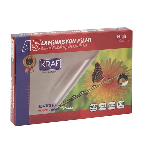 Etiket: KRAF LAMİNASYON FİLMİ PARLAK A5 125MIC 100LÜ 2125